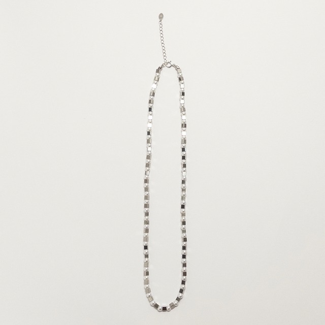 material 留め具 silver925 サイズ・・・全長約41cm (アジャスター4cm) シェルパール ステンレスキューブビーズ 4mmのシェルパールとステンレスのキューブビーズのネックレスです 大人カジュアルをコーデに取り込みやすいシンプルなデザインにお仕上げしてます Tシャツにも隠れる事ない長さで重ね付けもお楽しみ頂けるのではないでしょうか ・繊細なデザインな為、過度な負荷はご注意ください。