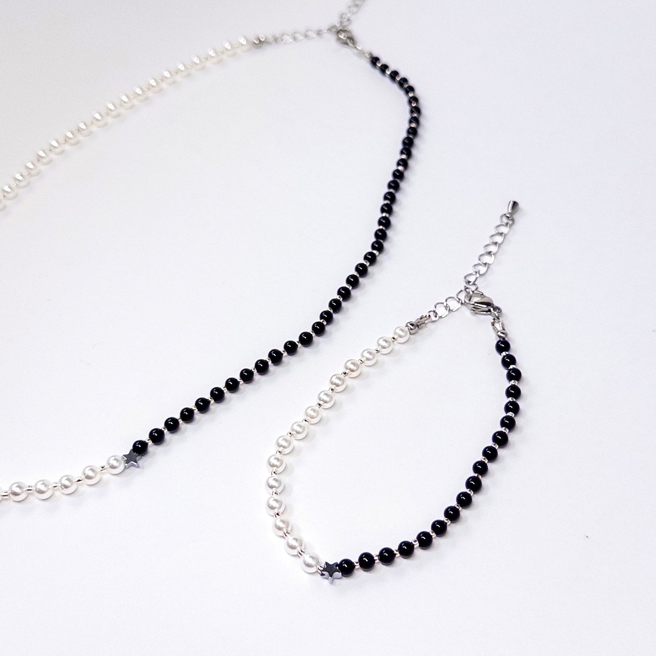 アクセントにヘマタイトのシルバーの星で大人っぽさの中にも可愛さを演出。