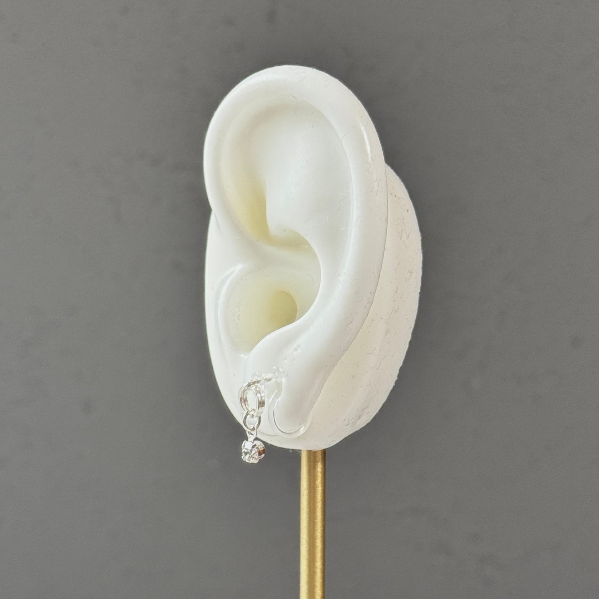 動くたびに、2.5mmのクリスタルが控えめに光を受け、