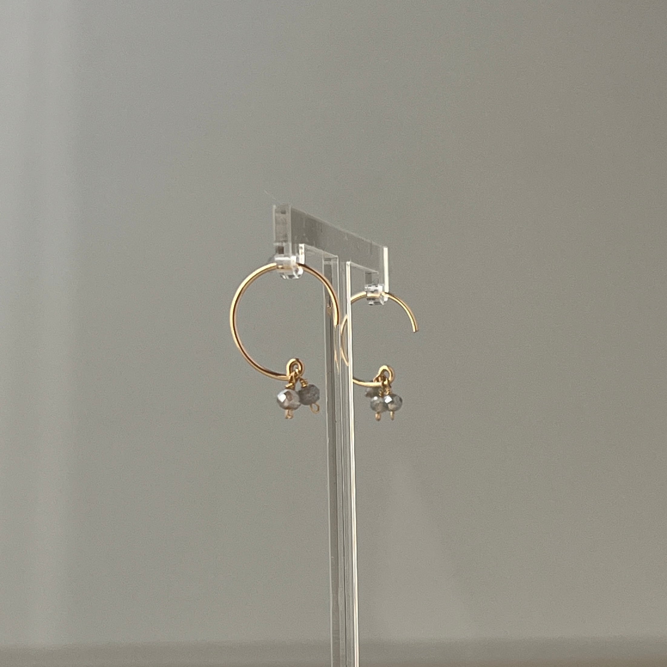 煌めく小さな天然石が耳元で華やかに輝くフープピアスです