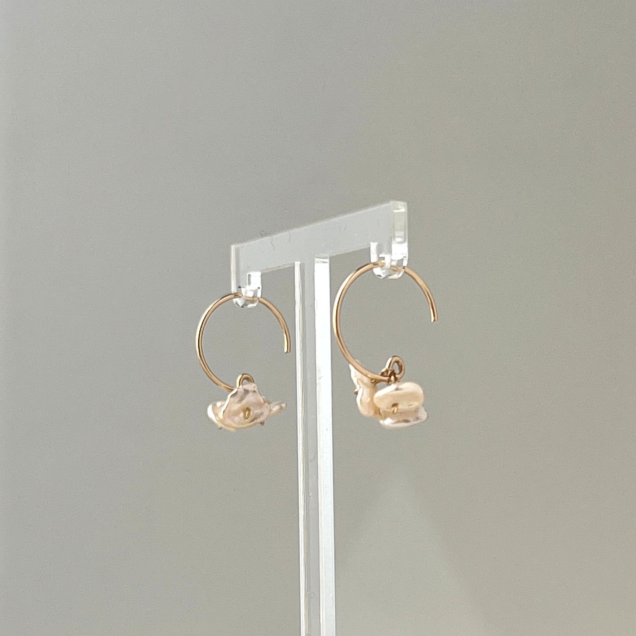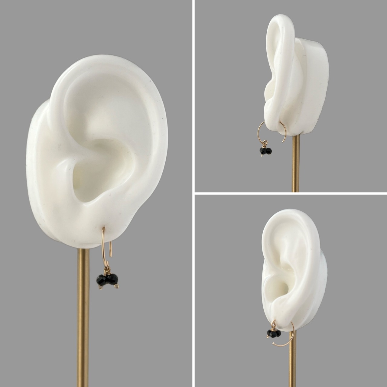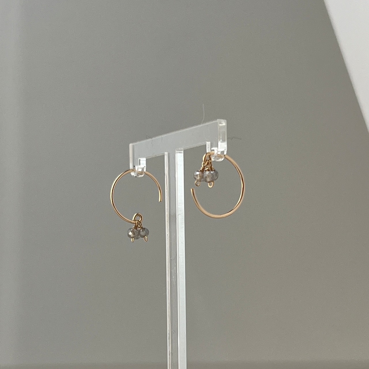 フープの先に3粒。または、耳元で3粒。